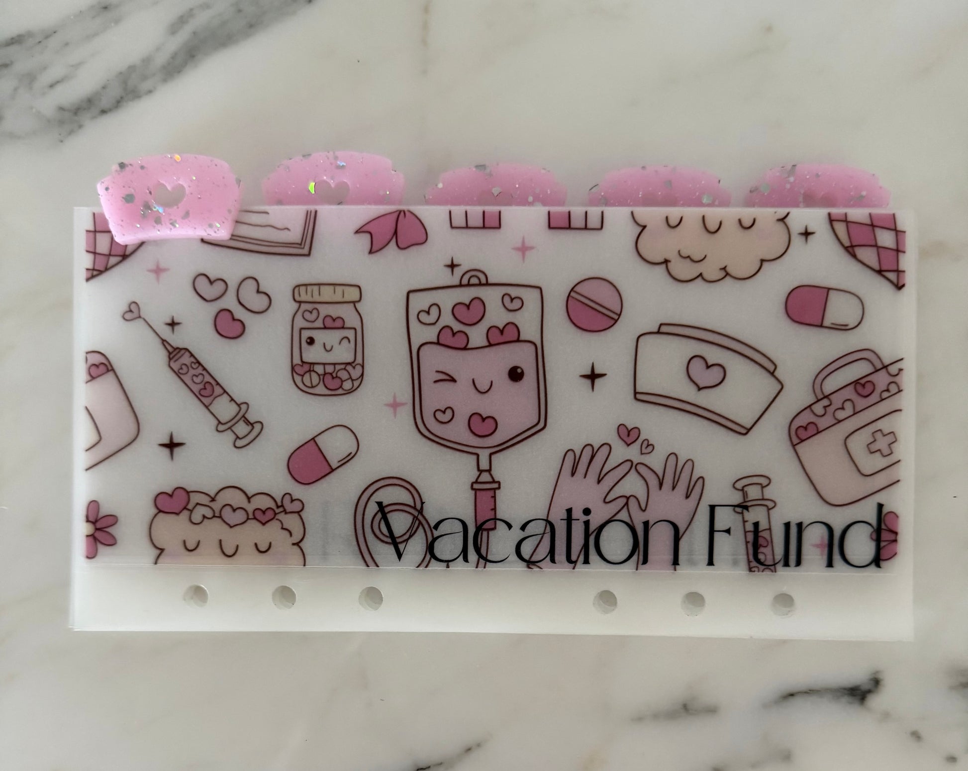 Comes with 5 and 5 cap dividers which are attached to the envelopes.
