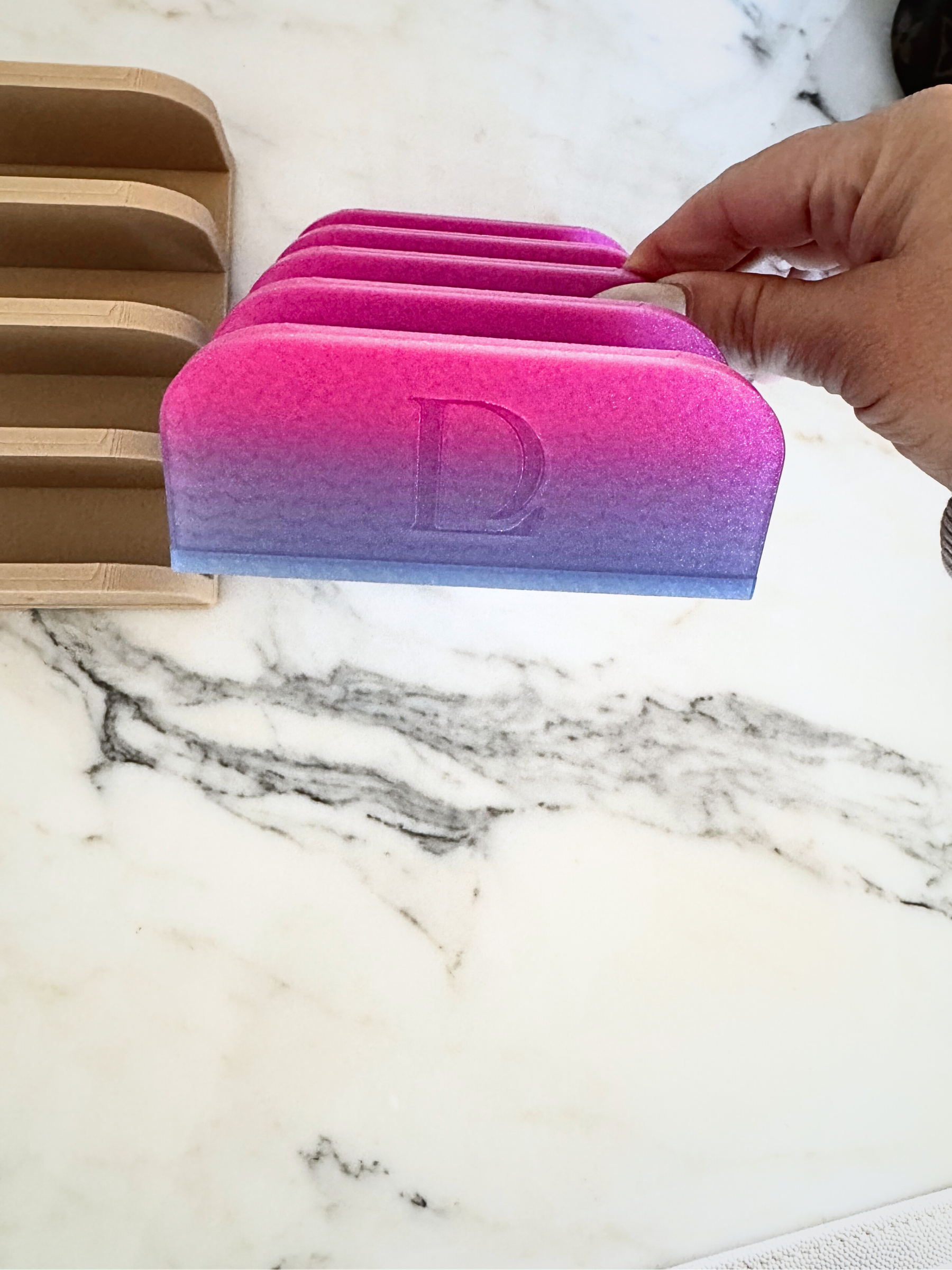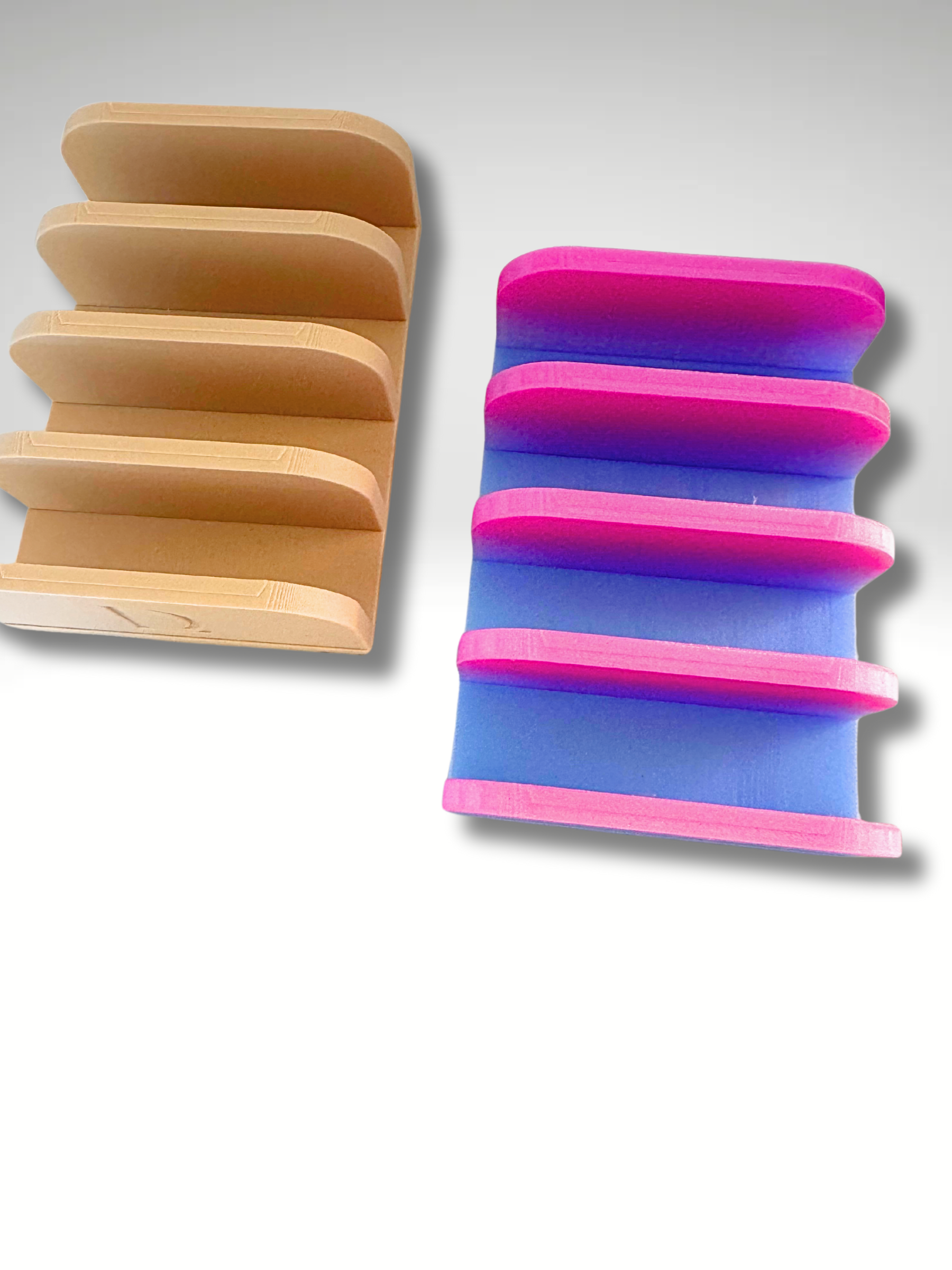 The new 4 Slot and 7 slot Cash Tray features a sleek design and a curved edge, making it both compact and easy to store. Its efficient design also aids in organizing cash stuffings. Available in a variety of colors, each tray is 3D printed and made to order, with processing time dependent on the volume of orders. Immediate shipping is guaranteed. Colors include Black, Nude, Ombre, and Blush. Contact us for custom color options.