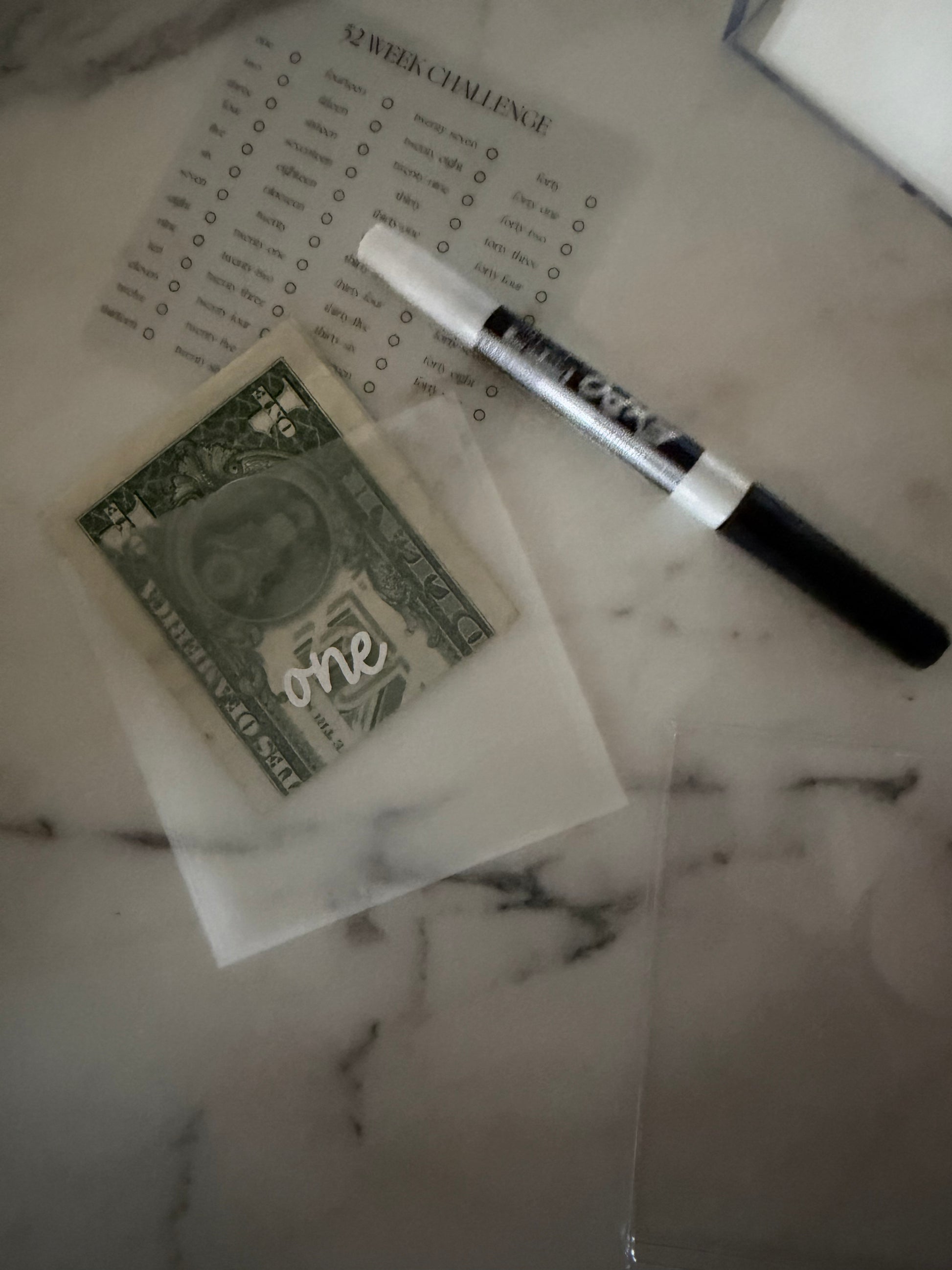 The Savings Box challenge comes with 52 plastic sleeve envelopes all numbered. Matte laminated sleeves